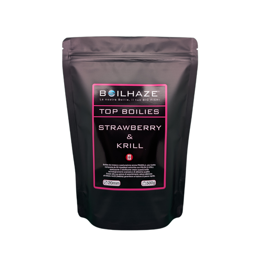 La nostra linea di TOP BOILIES si distingue nel mercato per le sue altissime proprietà organolettiche (colore, sapore e odore); oltre a vantare delle proprietà nutritive sbalorditive arrivando con una percentuale di proteine altissima. In tutti i nostri basemix inseriamo inoltre una formula esclusiva di lieviti che garantisce al pesce la massima digeribilità evitando disturbi alimentari. Queste proprietà rendono le nostre boilies dei veri piatti ''gourmet'' dove le carpe mangeranno e torneranno senza ombra di dubbio.